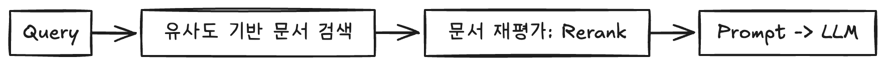 이 때, 벡터저장소에서 유사도 기반으로 문서를 검색할 때 기존보다 더 많은 문서를 검색해 Re-rank를 수행하면 더 높은 정확도의 문서를 얻을 수 있다. 하지만 그만큼 평가할 문서가 많기 때문에 속도는 저하된다.