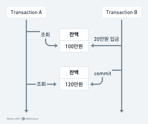 - 트랜잭션 A가 동일한 계좌 잔액 120만원 조회
