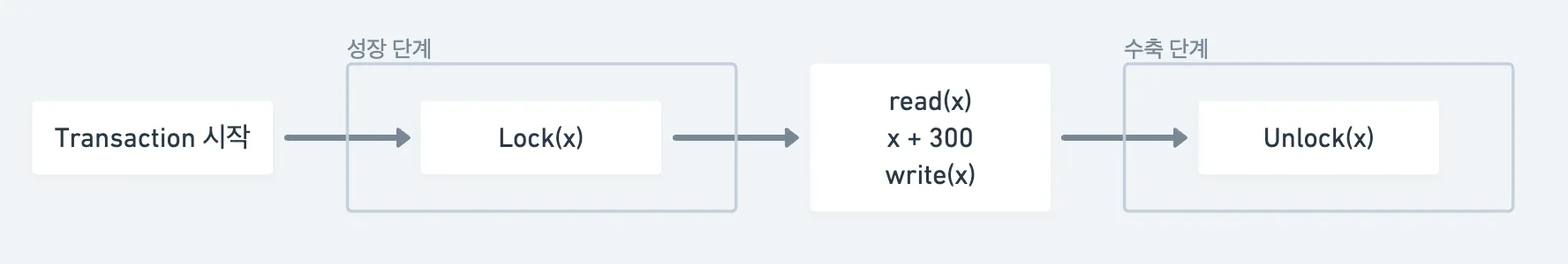 2PL은 트랜잭션이 데이터에 접근할 때 두 가지 단계를 따른다.